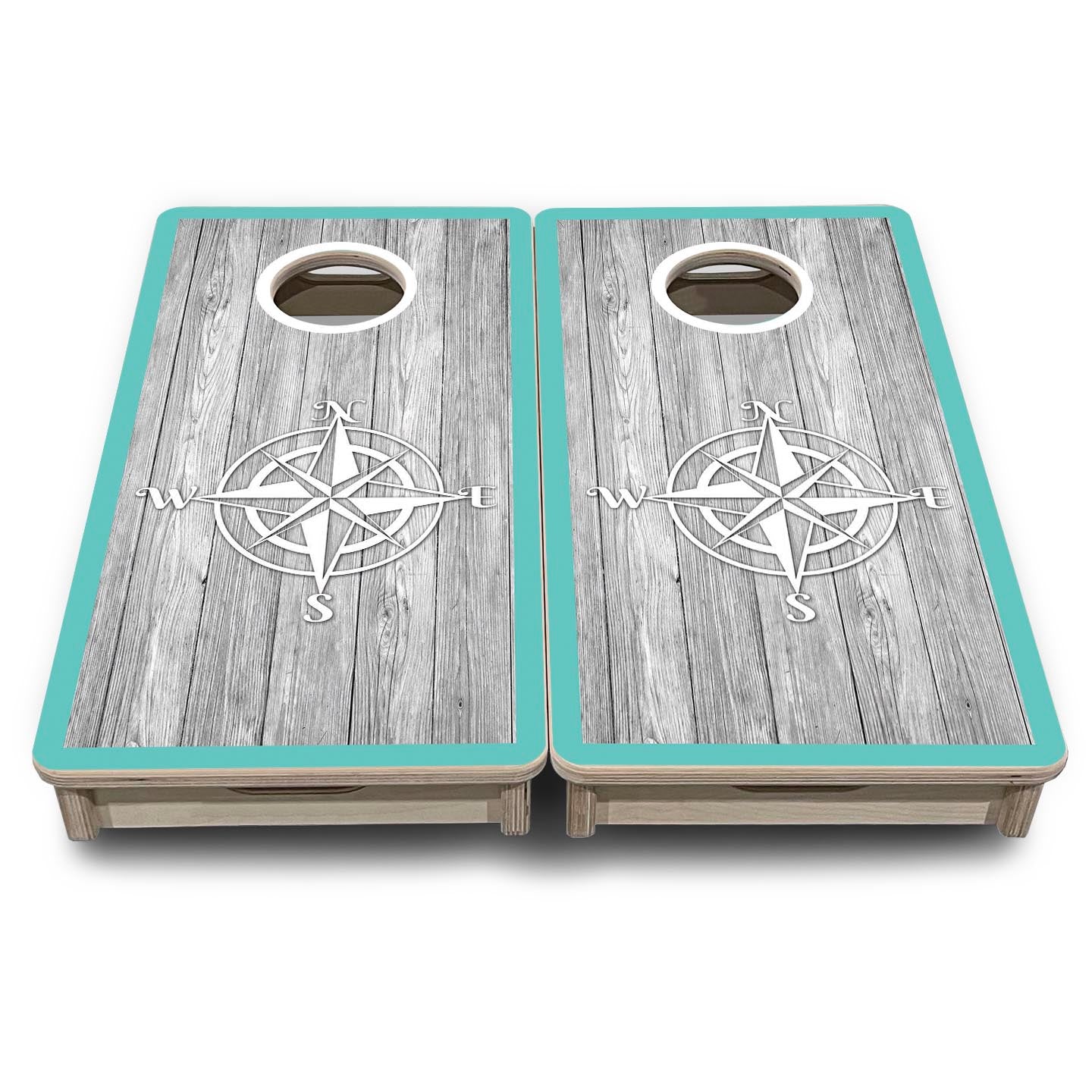 Coastal Compass Teal - Mini or Vacation Size Cornhole Boards