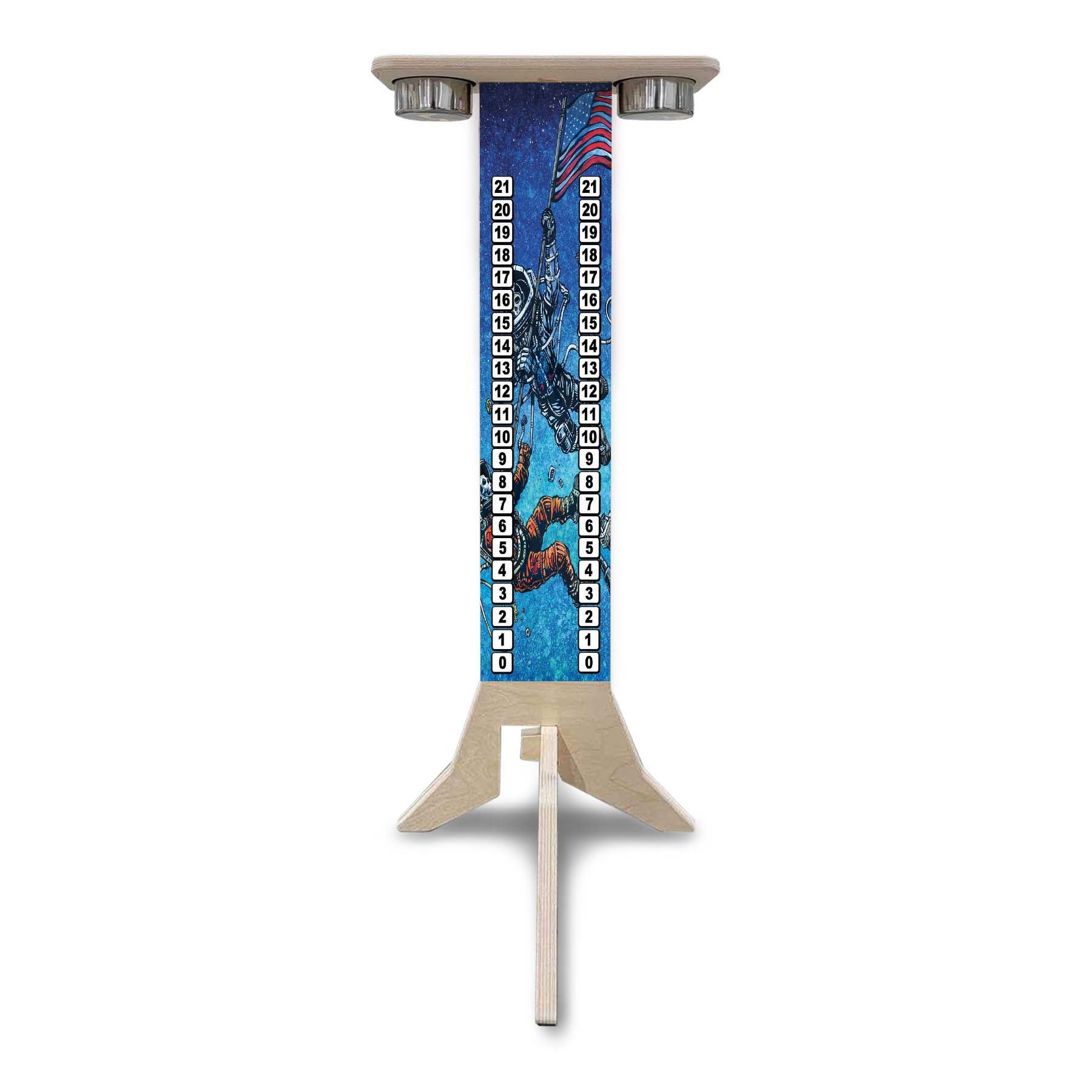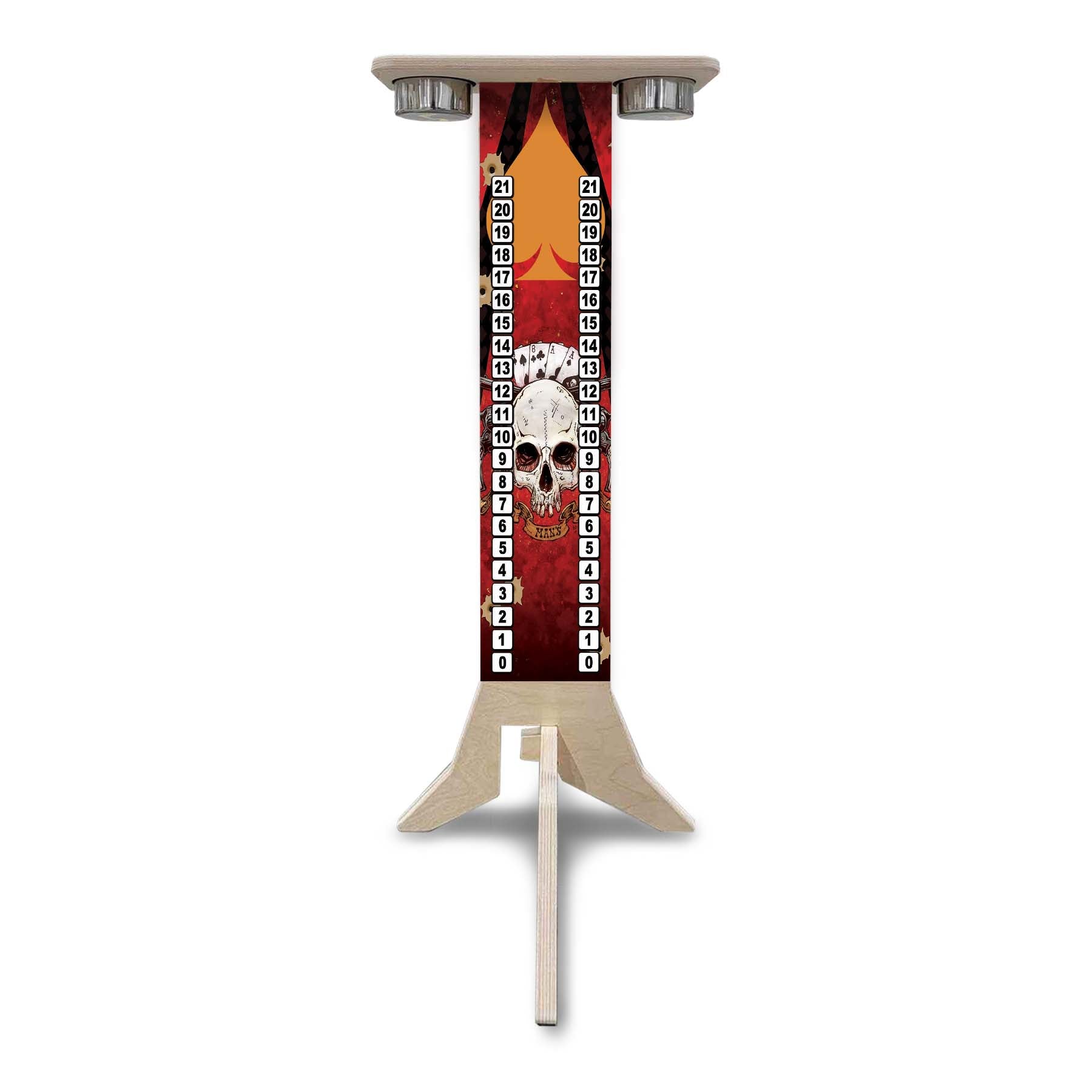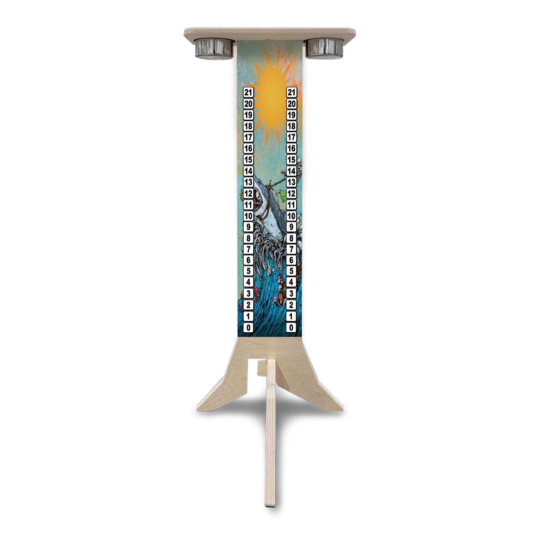 This listing is for a Direct UV Printed Cornhole Score Stand, made from durable 18mm (3/4") Baltic Birch. Each stand is printed on both sides, making it perfect for tournaments, events, or backyard battles where visibility matters.