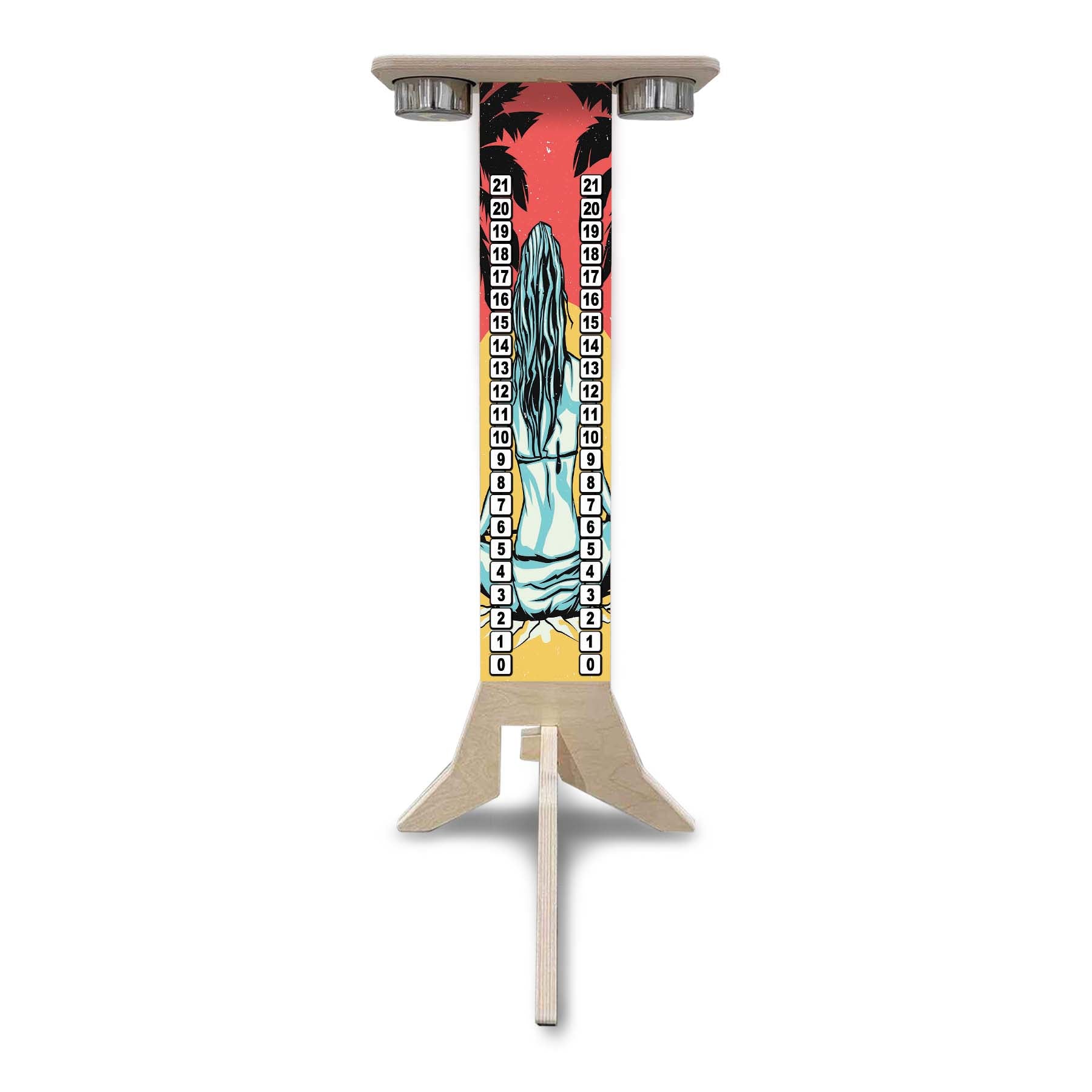 This listing is for a Direct UV Printed Cornhole Score Stand, made from durable 18mm (3/4") Baltic Birch. Each stand is printed on both sides, making it perfect for tournaments, events, or backyard battles where visibility matters.