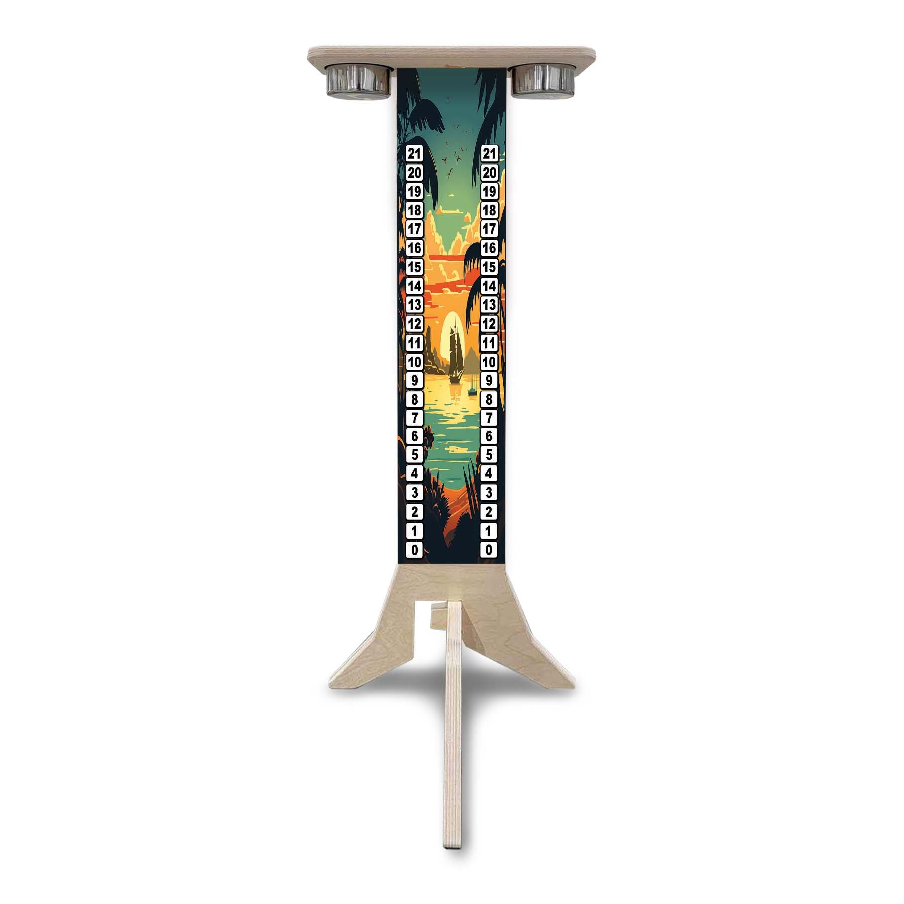 This listing is for a Direct UV Printed Cornhole Score Stand, made from durable 18mm (3/4") Baltic Birch. Each stand is printed on both sides, making it perfect for tournaments, events, or backyard battles where visibility matters.