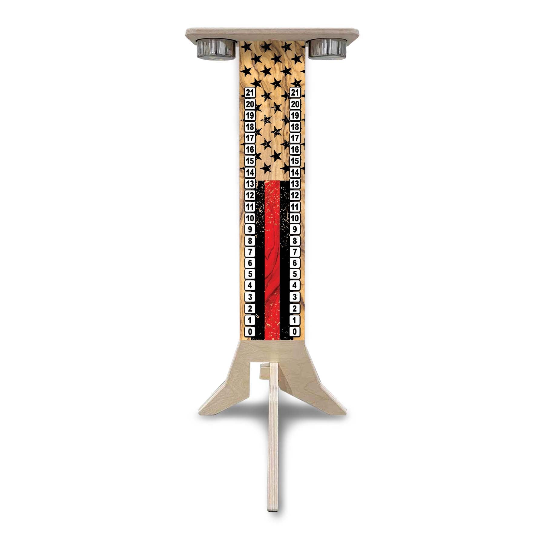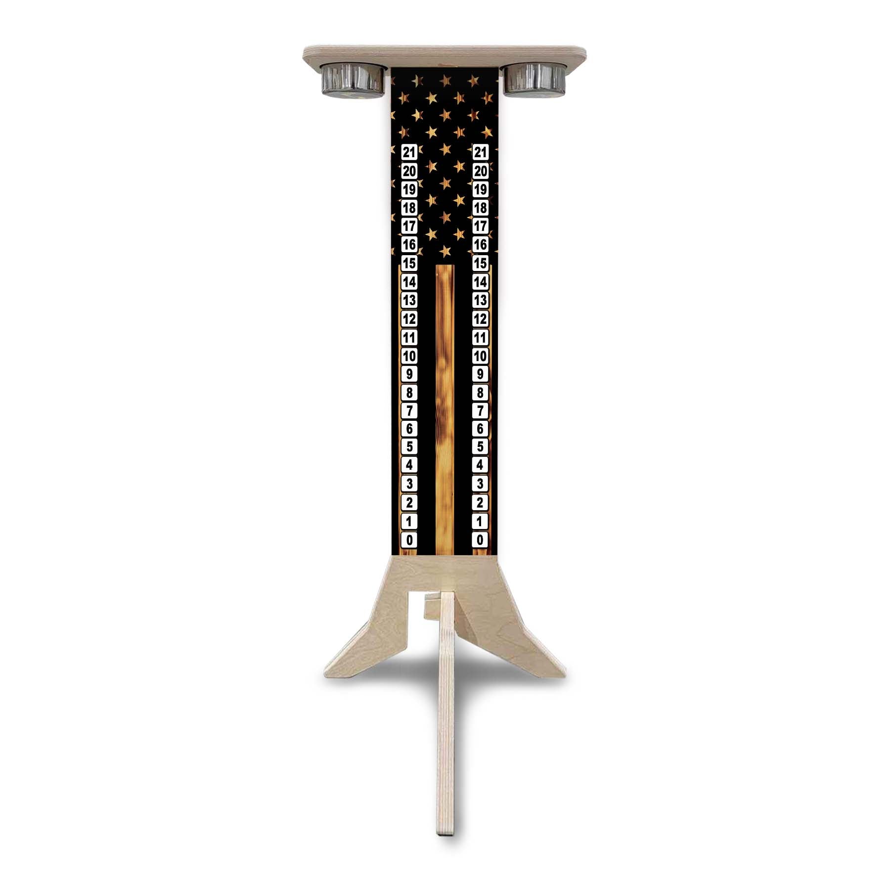 This listing is for a Direct UV Printed Cornhole Score Stand, made from durable 18mm (3/4") Baltic Birch. Each stand is printed on both sides, making it perfect for tournaments, events, or backyard battles where visibility matters.