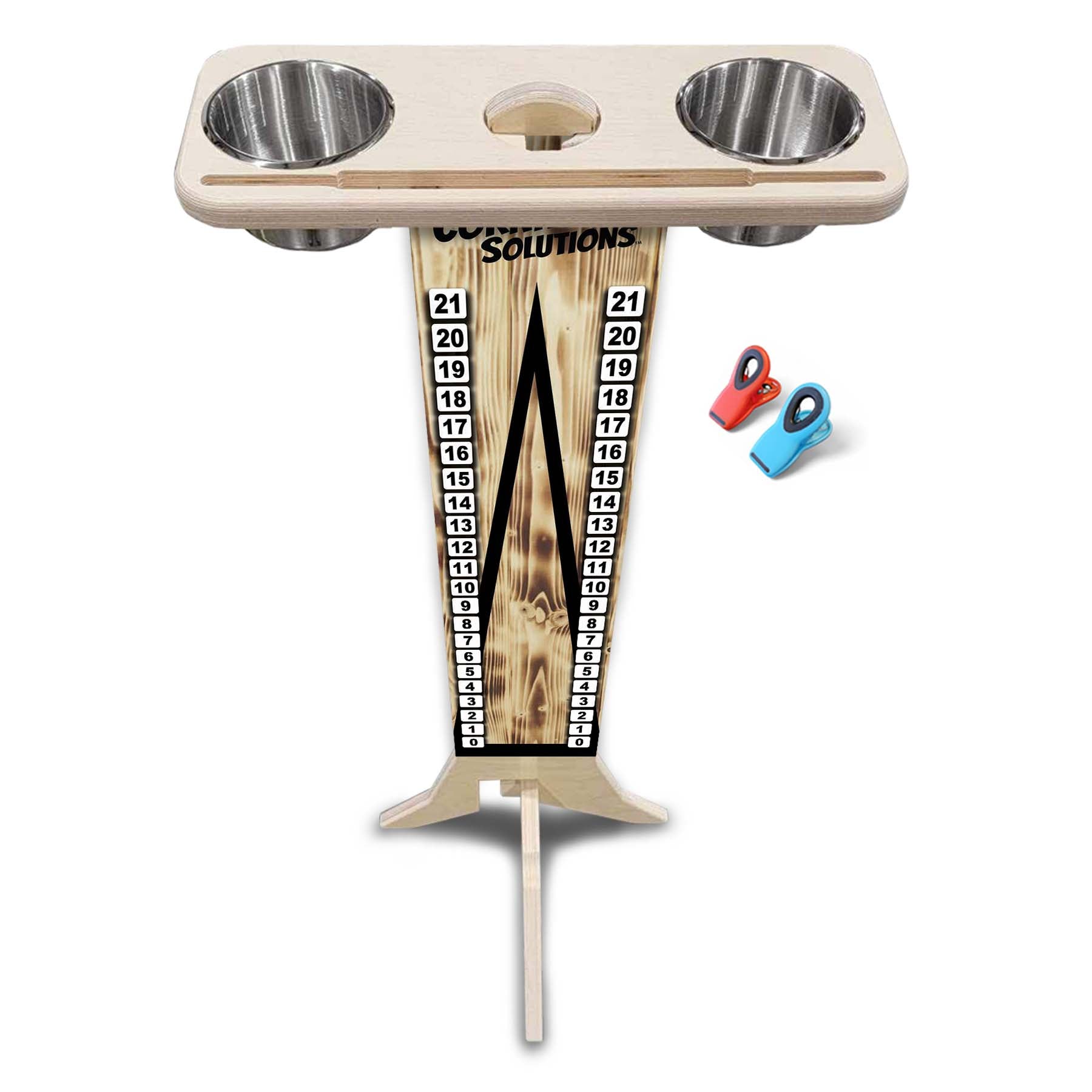 This listing is for a Direct UV Printed Cornhole Score Stand, made from durable 18mm (3/4") Baltic Birch. Each stand is printed on both sides, making it perfect for tournaments, events, or backyard battles where visibility matters.