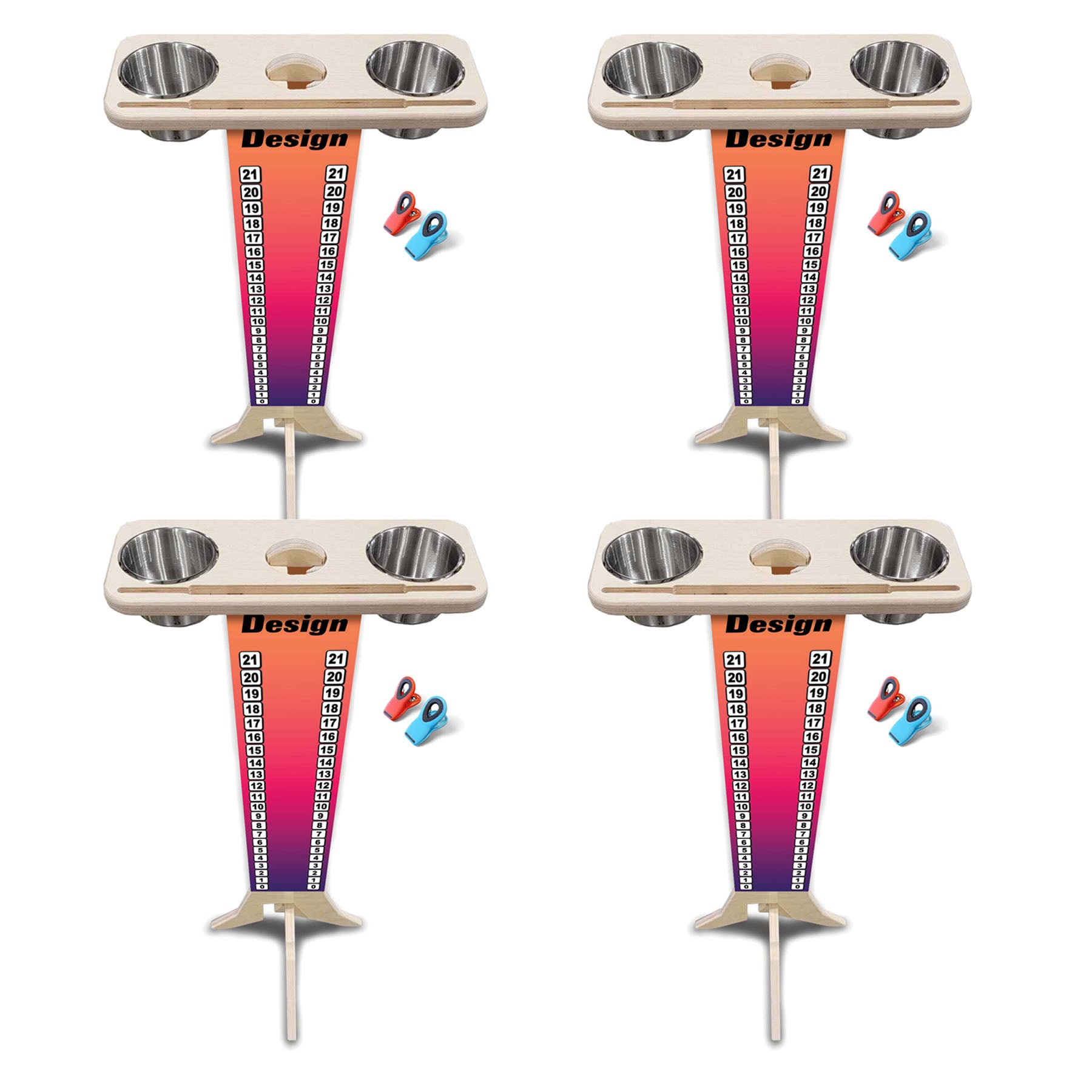 This listing is for (4) Custom Printed Score Stand, made from durable 18mm (3/4") Baltic Birch plywood and printed on both sides for maximum visibility. It’s the perfect companion for your tournament setup, backyard games, or brand showcase.