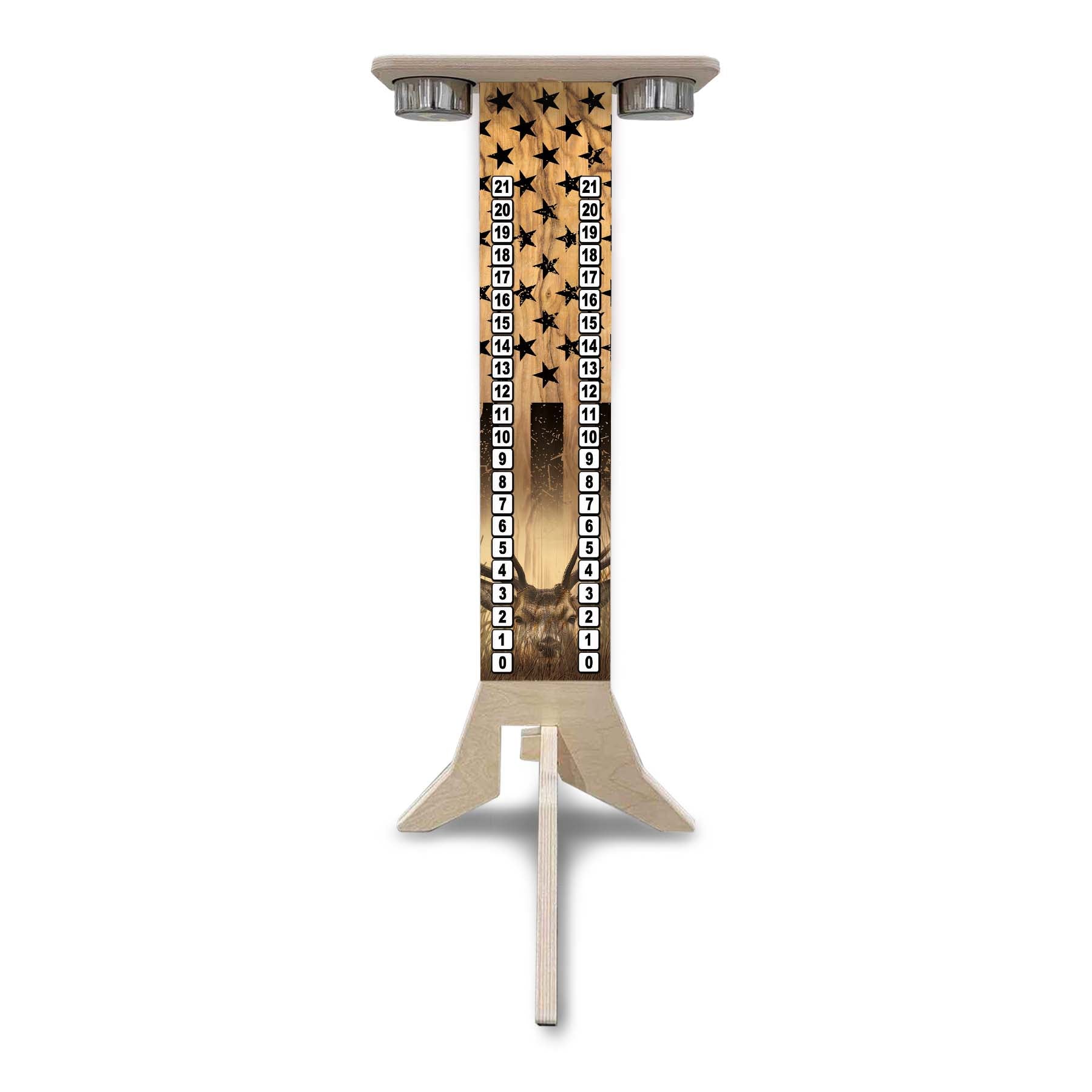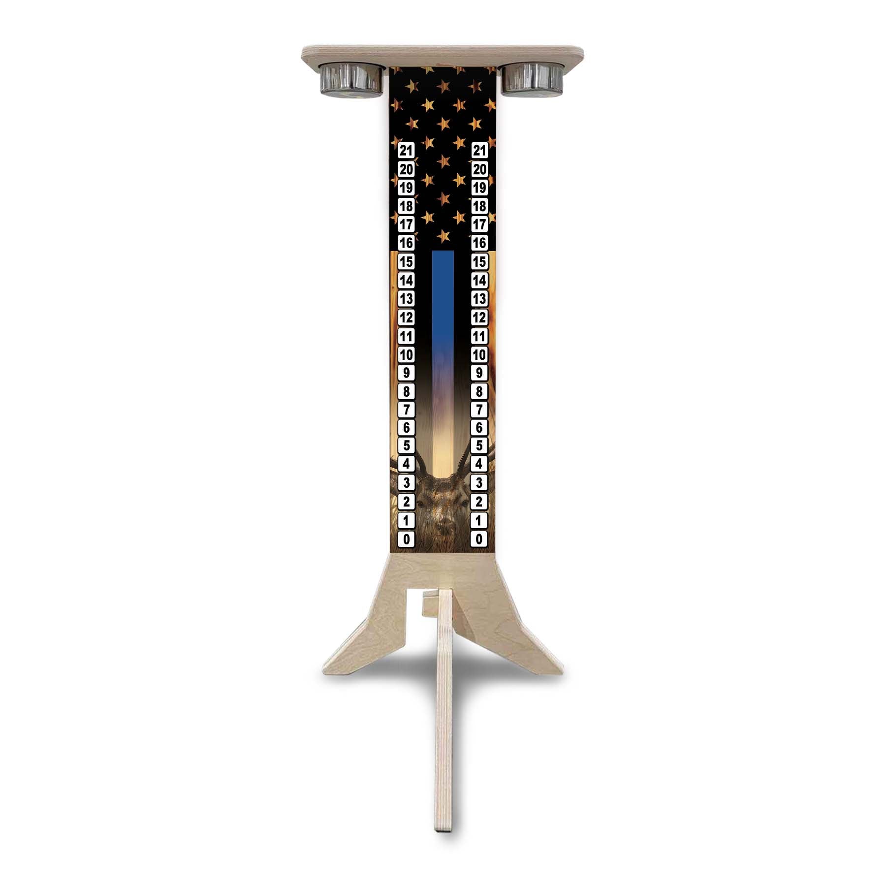 This listing is for a Direct UV Printed Cornhole Score Stand, made from durable 18mm (3/4") Baltic Birch. Each stand is printed on both sides, making it perfect for tournaments, events, or backyard battles where visibility matters.